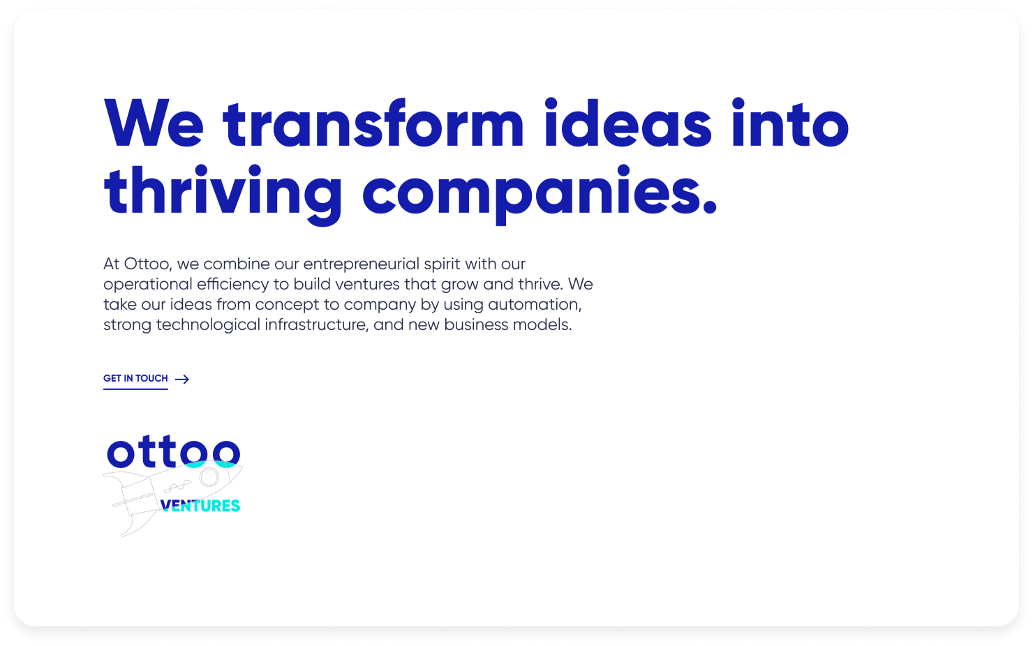 At Ottoo Ventures, we transform ideas compatible with our vision into thriving ventures, elevating them with innovative business models and strategies.